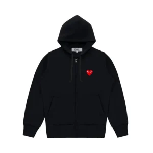 CDG Hoodie Zip-Up With Large Heart – Black Make a bold statement with the CDG Hoodie Zip-Up With Large Heart