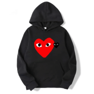 Black CDG Hoodie with Small Red Heart The Black CDG Hoodie with Small Red Heart is a minimalist masterpiece from