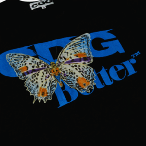 The CDG x Better™ Gift Shop Butterfly T-Shirt Black is a statement piece that merges contemporary streetwear aesthetics with timeless