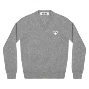 The CDG Play V-neck Pullover White Heart (Grey) is a timeless piece that blends minimalism with streetwear sophistication. Crafted from