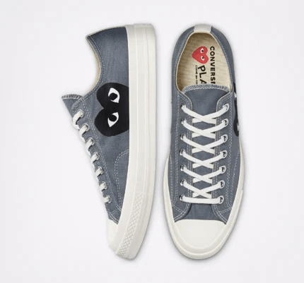 Whether you’re pairing them with denim, joggers, or even smart-casual outfits, the CDG Converse Black Heart Low Top Grey delivers effortless cool with a touch of avant-garde charm. It’s more than just a shoe — it’s a fashion statement for those who love merging classic with contemporary.