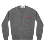 The CDG PLAY Round Neck Cardigan Red Emblem Grey represents the perfect balance between comfort, quality, and style, making it a must-have staple for anyone who values minimalist fashion with a bold touch.