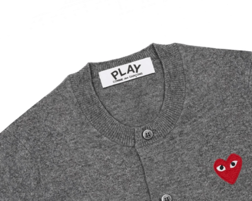 SKU: N/A Category: CDG Cardigan Tag: CDG PLAY Round Neck Cardigan Red Emblem Grey