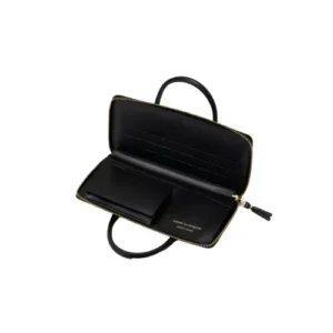 Crafted from 100% premium cowhide leather, the CDG Wallet Handles Line Black SA5100HA feels smooth and durable in hand. Its compact shape ensures it fits easily into pockets or small bags while offering impressive interior space. The high-quality gold-tone zipper ensures smooth access and long-lasting performance. Inside, you’ll find ample room for coins, folded bills, and essential cards, perfect for modern lifestyles.