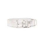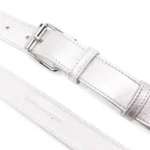 Elevate your style with the Comme Des Garçons Wallet Metallic Leather Belt Silver-Tone, a statement accessory crafted for fashion-forward individuals. Made from premium smooth-grain calf leather with a lustrous metallic effect, this belt exudes luxury while offering lasting durability. The sleek silver-tone hardware and front buckle fastening provide a polished finish, while punched holes allow for a fully adjustable, comfortable fit.